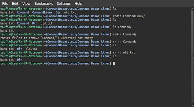 If you want to create a directory with spaces for example the directory "Command Dasar Linux", then use the same principle as moving directories, namely with single or double quotes (",') and backslashes (\) here's an example.