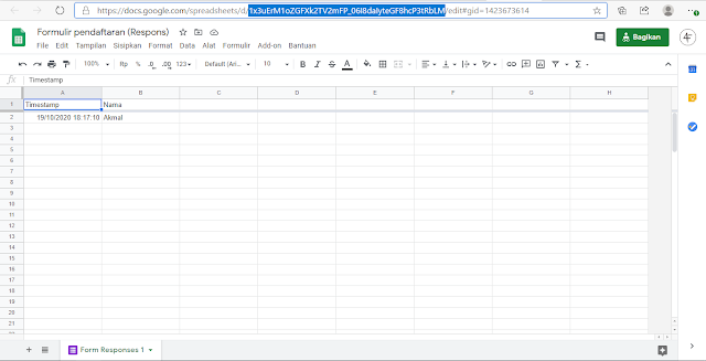 Then fill in, for example, the name Akmal. After filling it in, click send. After clicking the send button, return to the display where you input the form or questions.